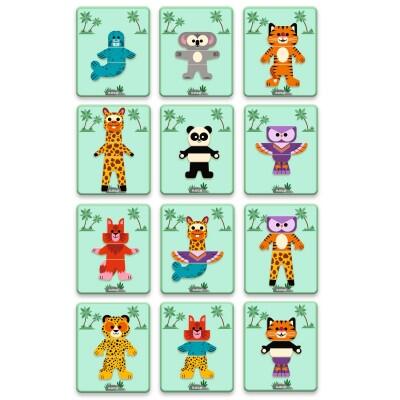 Il bambino o la bambina gioca con calamite di legno su una scatola di metallo sottile. Riproduce gli 8 animali rappresentati sulle carte scegliendo il lato giusto della scatola e crea mix buffi.