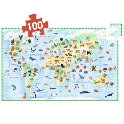 Scoprire gli animali del mondo divertendosi! Un puzzle di 100 tessere, un poster e un libretto per conoscere i nomi degli animali e le regioni del mondo in cui vivono.