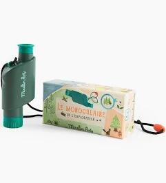 Monocolo del esploratore Le Jardin Moulin Roty .Unvero monocolo per poter vivere tante bellissime avventure. Un accessorio indispensabile per i piccoli esploratori del mondo. Il binocolo si regola per adattarsi al viso del bambino, compatto e facile da afferrare per le piccole mani dei bambini. Un comodo laccino permette di appenderlo al collo e averlo sempre a portata di mano. Uno strumento straordinario per ammirare la fauna e la flora durante le passeggiate all’aperto. Un bellissimo regalo perimmergersi nella natura e trascorrere ore preziose all’aria apertaimparando direttamente dal mondo che ci circonda. Il binocolo si presenta in una bella scatola con coperchio illustrato. Si presenta in una bella scatolina decorata di cartone.