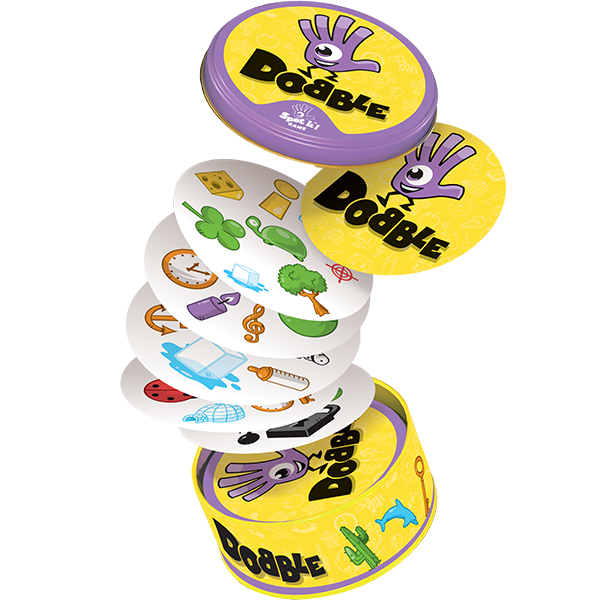 Un gioco ingegnoso con 55 carte, 57 simboli in totale e 8 simboli per carta. C'è sempre un simbolo in comune fra due carte: dovrai trovarlo e nominarlo ad alta voce per vincere! 5 Mini-Giochi per giocare insieme! Dobble è un gioco che incoraggia la concentrazione e l'osservazione.