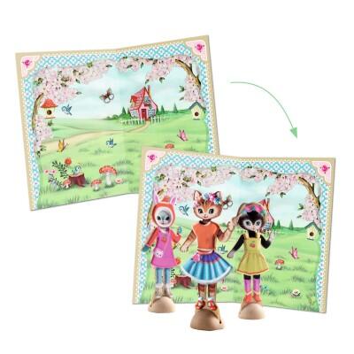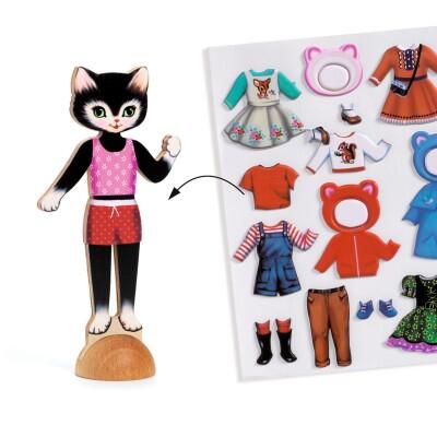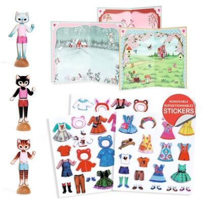 Un'attività di collage per vestire 3 adorabili gatti di legno con più di 45 vestiti, da incollare e ri-incollare come più ti piace! Non ti resta che inventare le storie più belle grazie alle tre scene.