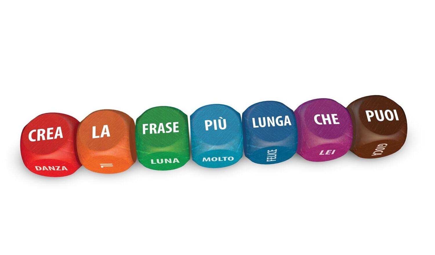 Lancia i 13 dadi e divertiti a comporre una frase di senso compiuto, la più lunga possibile.